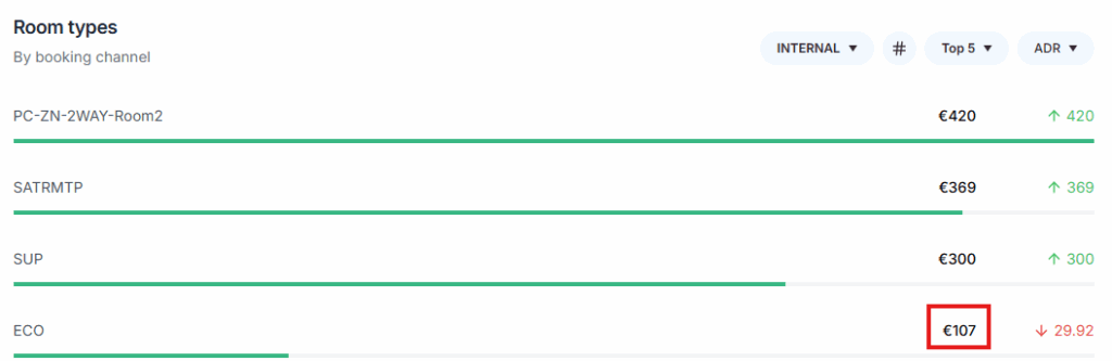 Analyzing the sales of different room types across various market segments or booking channels, while filtering data by the number of rooms sold, room revenue, and Average Daily Rate (ADR), can reveal significant patterns. This analysis helps identify both the best and worst performing markets or channels, as well as those with the highest and lowest performance deviations. Here are the metrics worth tracking: